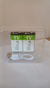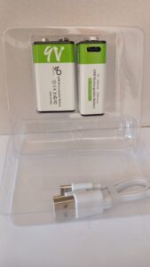 Bateria Recarregável de 9V, com constante tensão, 650mAh – Carregamento via Cabo USB (conector não incluído) – Preço por unidade. – Em teste