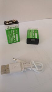 Bateria Recarregável de 9V, com constante tensão, 1200mAh – Carregamento via Cabo USB (conector não incluído) – Preço por unidade.