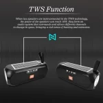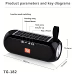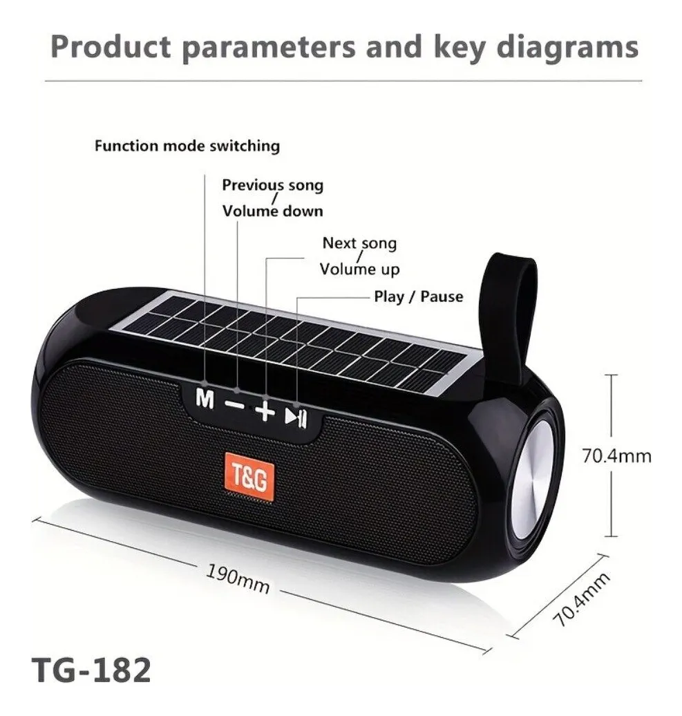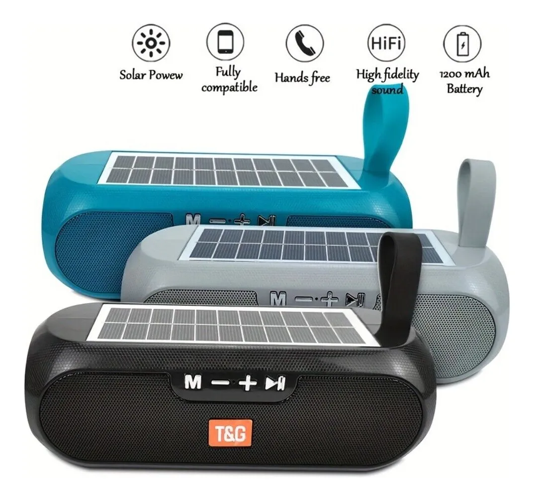 Caixa de Som – Portable Wireless Speaker – T&G-182 – Type – C – som estereo – Recarregável via USB e também a Energia Solar. 4 playback modes. TF-Card / USB Disk / AUX Line In.