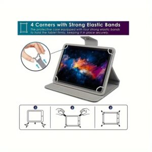 Capa ajustável para tablet com fecho magnético – Capa protetora de couro sintético durável com suporte e faixas elásticas, compatível com tablets android, iOS e Windows de 9,6 a 10,5 polegadas