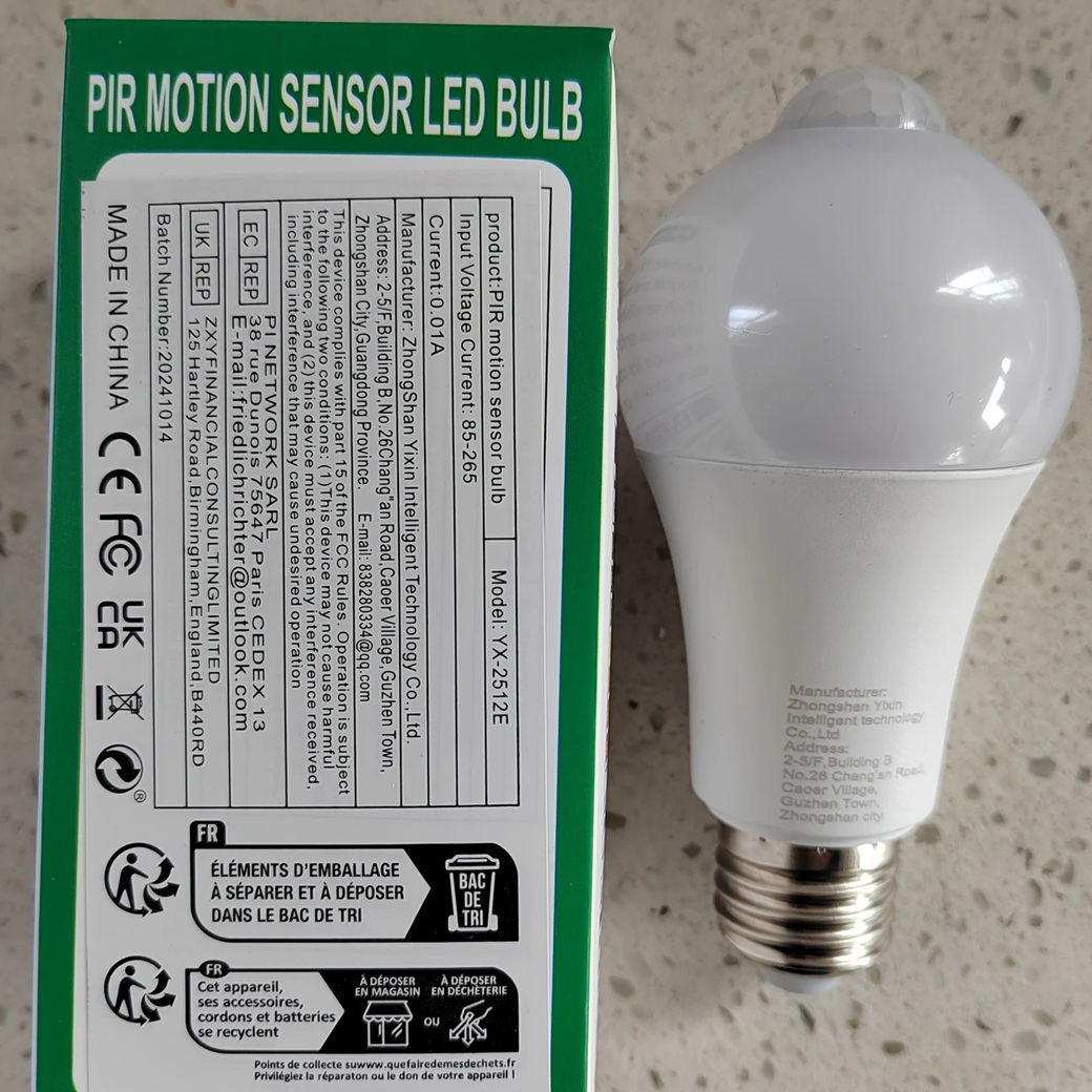 Lâmpada LED em formato de pera com sensor de movimento, base E27, 85-265V, luz branca, sem bateria, montagem embutida, área de 64, 3000+ lumens.