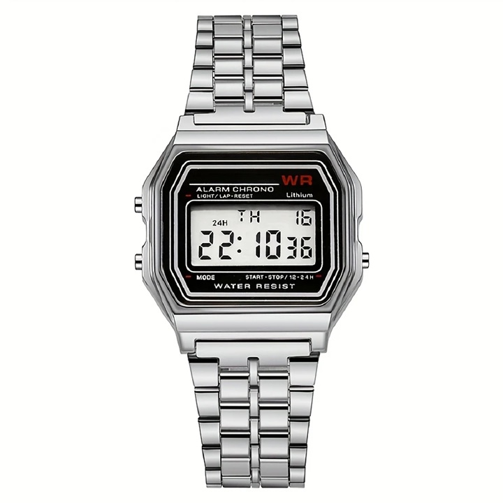 Télemetro LED, Moda Unissex, Mostrador Quadrado Legal, Pulseira em Aço Inoxidável Prateada, Decoração Diária de 24 Horas para Esportes ao Ar Livre